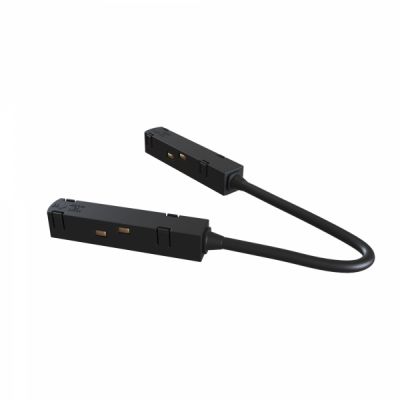 Угловой коннектор питания для накладного и встраиваемого магнитного шинопровода. Соединитель гибкий (коннектор питания) для магнитного шинопровода. Черный пластик. Габаритные размеры: 18 × 18 × 365 мм