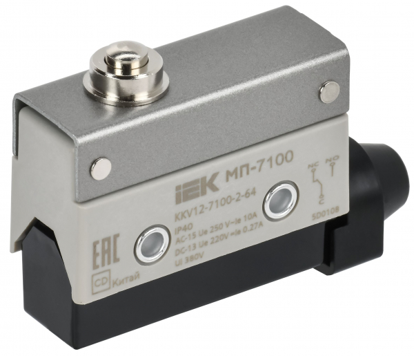 Микропереключатель концевой типа МП товарного знака IEK  предназначен для коммутации электрических цепей управления переменного и постоянного тока под воздействием управляющих упоров в определенных точках пути контролируемого объекта.