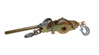 Предназначена для изменения тяжения проводов воздушных линий электропередач, оптоволоконных линий связи, тросов, а также с целью подъема груза по вертикали в пределах длины троса лебедки посредством дополнительных устройств. Представляет собой грузоподъемный механизм c крюками с обеих сторон, таль которого выполнена из стального троса, приводной барабан выполнен из металлической обоймы и стального основания, снабжена блочным механизмом, что позволяет увеличить тяговое усилие. Использование лебедки допускается с блоком и без. Работа без блока допускается, при условии демонтажа болтового соединения блока и перестановки тали на основной крюк. Управление лебедкой осуществляется с помощью металлической рукоятки, которая соединена с храповым механизмом. Механизм оснащен тремя скоростями — нейтраль (блокирует заданное тяжение), основная (производит натяжение тали), реверс (снижает тяжение тали). Наличие механизма-фиксатора, обеспечивает удержание лебедки в заданном положении при тяговых нагрузках. Присутствует реверс, обеспечивающий изменение направления движения (смотка/размотка). Возможна работа без блочного механизма, что позволяет увеличить длину тали вдвое, при снижении тягового усилия. Крюки имеют подпружиненный ограничитель, во избежание соскальзывания крюка с закрепляемой поверхности. Наличие третьего крюка на проушине — быстросъемный механизм, который позволяет облегчить процесс перестройки режима работы лебедки (с блоком/без блока). Крюки устойчивы к механическим нагрузкам и имеют защитное антикоррозийное покрытие. Рукоятка имеет накатку для повышения эргономики.