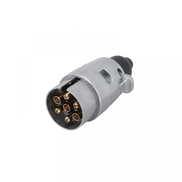 Металлическая вилка для прицепа с 7 контактами используется для подключения к розетке фаркопа на автомобиле и передачи электроэнергии от автомобиля к прицепу. Используется с 7-контактной розеткой фаркопа.