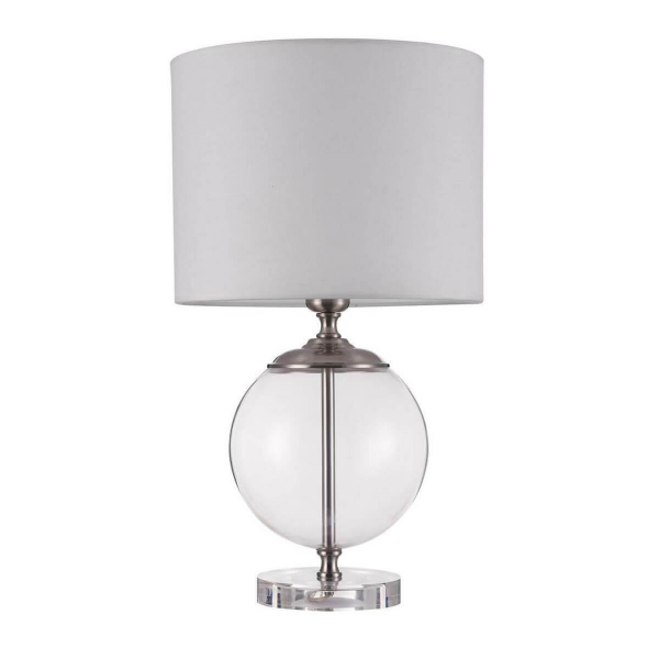Настольная лампа, которая с легкостью поддержит композицию при создании интерьера. Основание изготовлено из прозрачного акрила и дополнено шаром из выдувного стекла. Металлические детали покрыты гальваническим способом в цвет никель. Абажур изготовлен из ткани, нанесенной на ПВХ. Настольная лампа Z533TL-01N; Цвет-Прозрачный; Высота-520; Высота при подвесном креплении--; Диаметр-300; Ширина--; Глубина--; Цоколь-E27; Мощность-40W