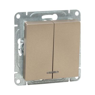 Механизм выключателя, двухклавишный, с подсветкой, шампань Эпика EKF